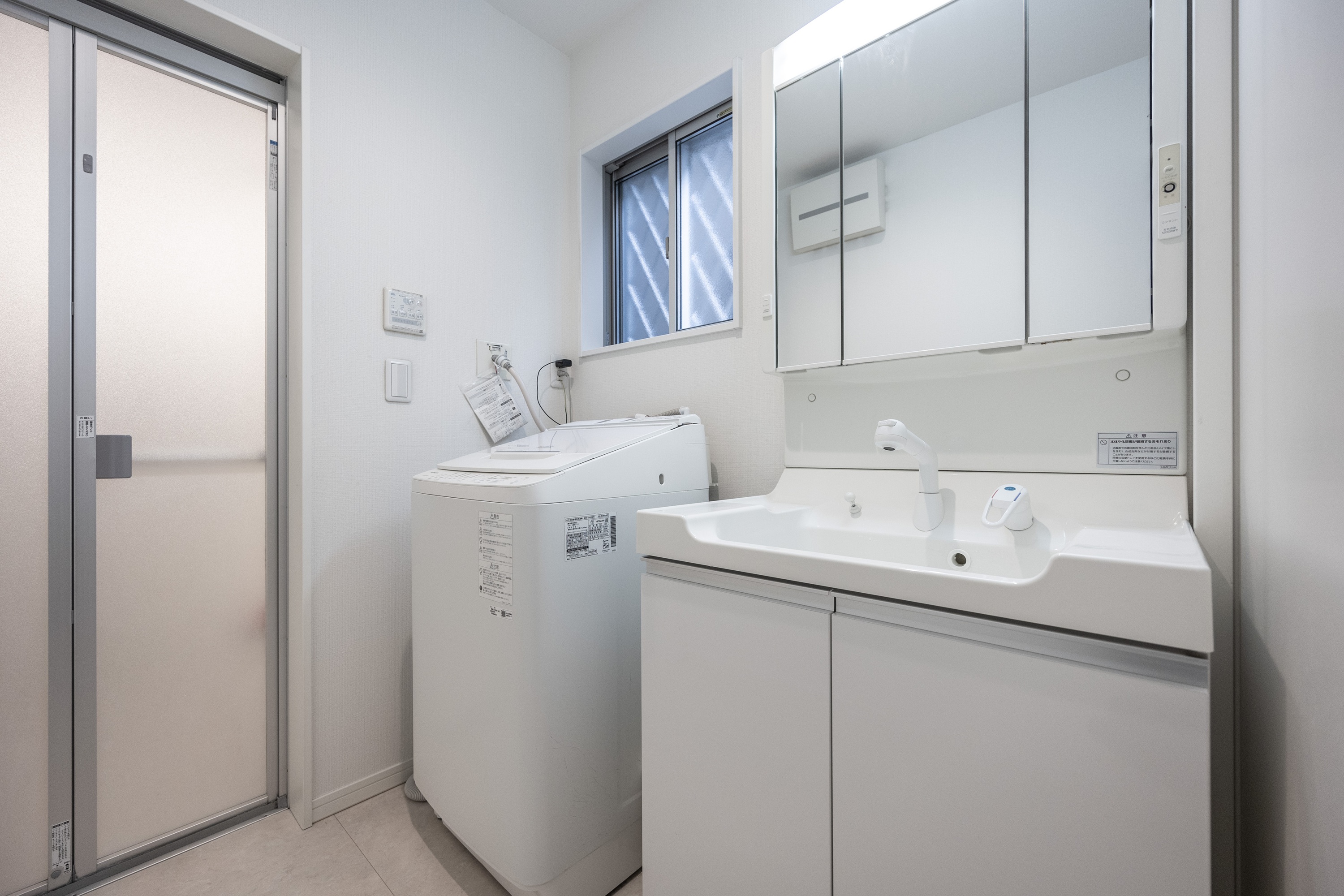 シンプルながら使い勝手に優れた洗面所です。家事効率もアップ!